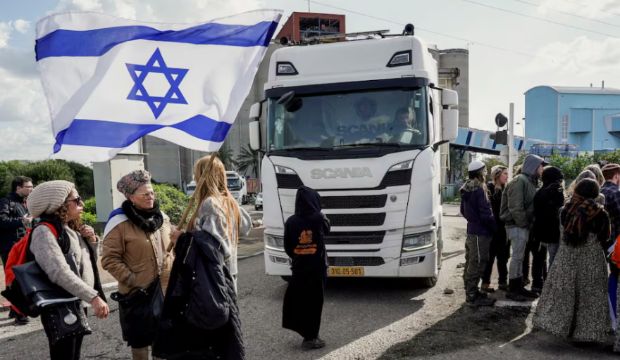 Un grupo de extremistas de derecha israelíes bloqueó este viernes el ingreso de camiones con ayuda humanitaria destinada a la población civil de Gaza, en las cercanías del paso fronterizo de Kerem Shalom, informó la prensa local.